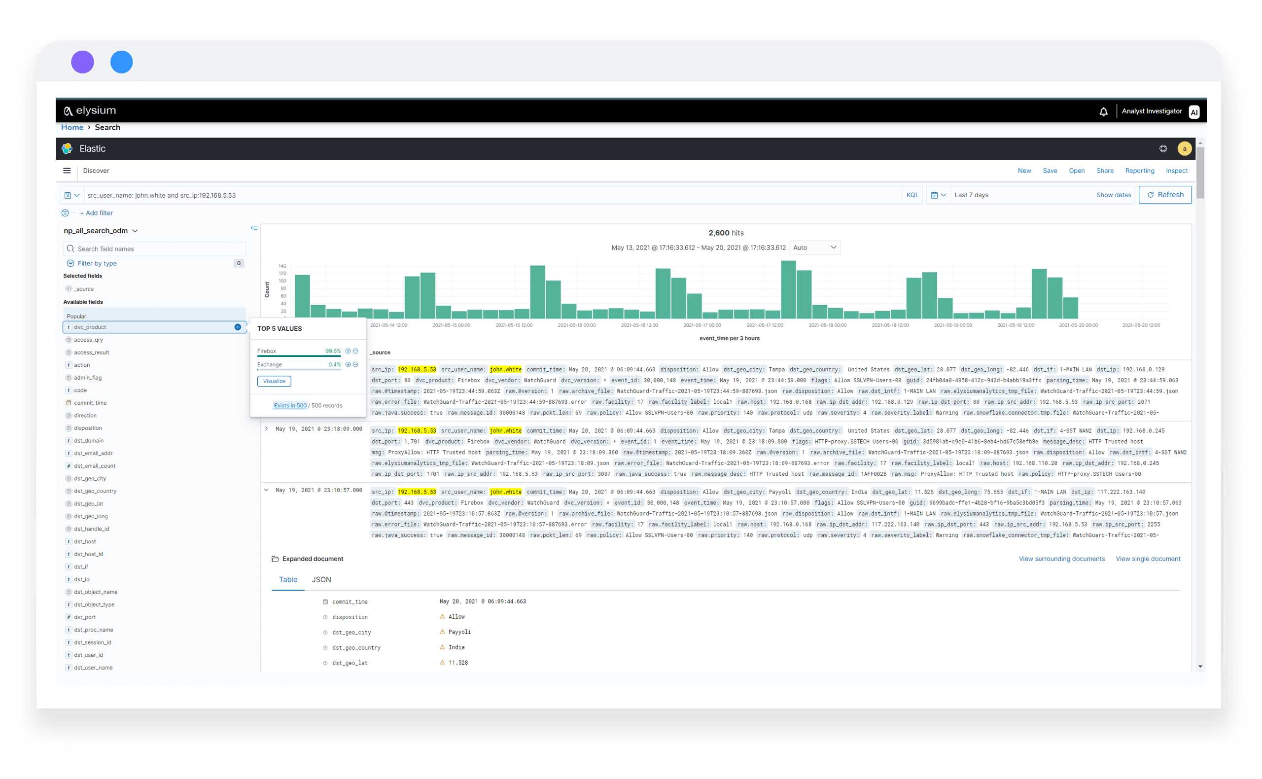 With Elysium Analytics, you can integrate with any security device log source “out of the box” and apply a data model. You can enable all log data in the data lake for full text search and profile for all interesting data points with “out of the box” behavioral analytics and explainable machine learning.